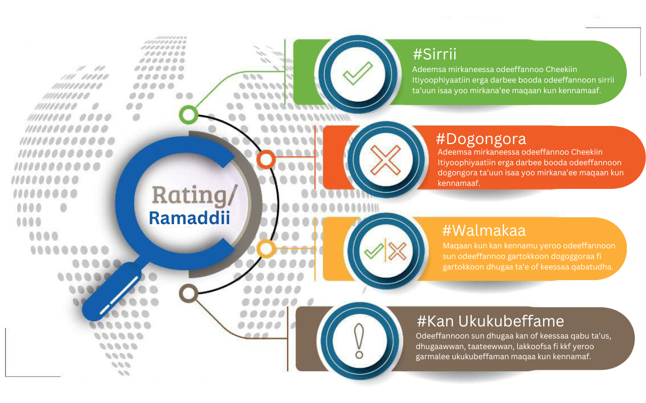 Cheek deeskiin Itiyoophiyaa sakatta’iinsa dhugaa raawwachuun odeeffannoowwan miidiyaa hawaasaa fi miidiyaalee irratti maxxanfaman calaluun dubbistoota isaaf ni dhiyeessa.